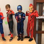 Als afsluiting van de Kinderboekenweek mochten de kinderen van de groepen 1 en 2 verkleed komen. Niet zomaar verkleed, nee, verkleed als wie of wat je later wil worden. Dat kan natuurljk 'gewoon' brandweerman zijn, maar ook prinses of superheld!