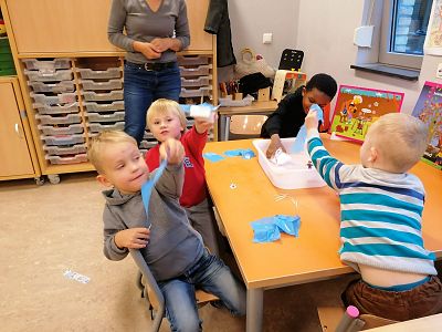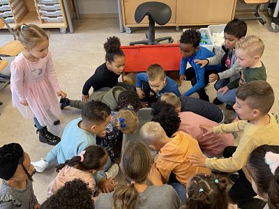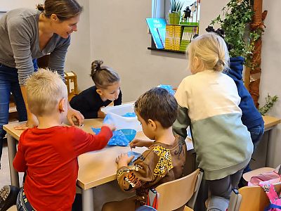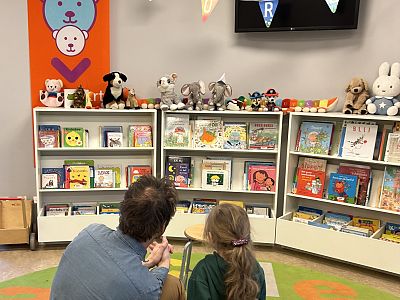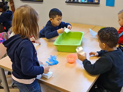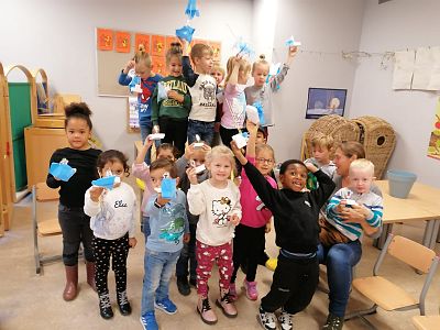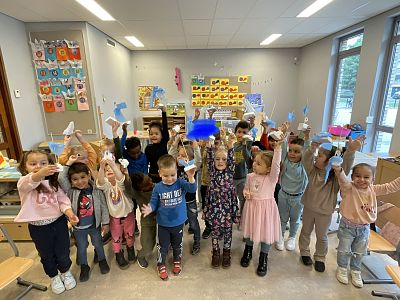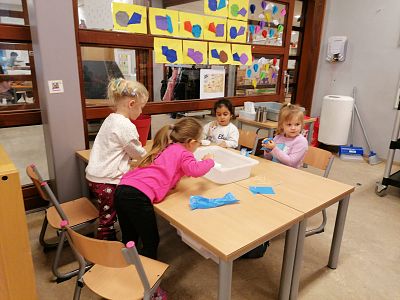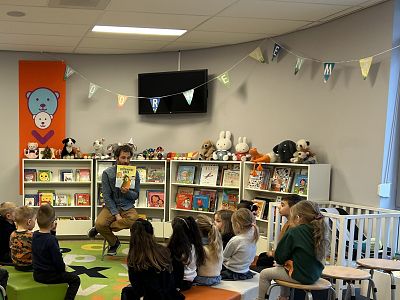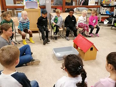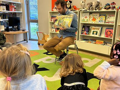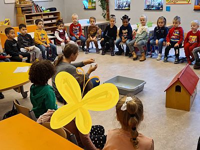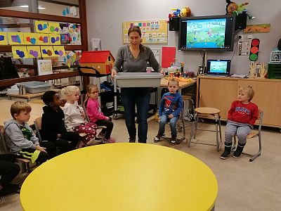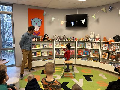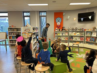 Wij gingen woensdag naar de bieb, waar meester Wouter het boek 'de bijzondere beer' voorlas. Dit ging over een beer die in de speelgoedfabriek niet goed in elkaar was gezet. Toch wist hij zeker dat er iemand zou zijn die hem als knuffel wilde hebben. Hierna speelden we een spel met heel veel knuffels. Een knuffel werd omschreven waarna wij moesten raden over welke knuffel het ging. Tot slot kregen we allemaal een teken/kleurplaat mee naar de klas.