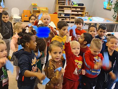 In de week voor de vakantie hadden we geen gym, maar kerstknutsel-uurtje met juf Kim en juf Zemira. Er zijn 3 mooie werkjes gemaakt: een kerstboom, een kerstbal en kerstbellen.