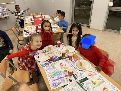 Het was weer een gezellig en heerlijk kerstdiner voor alle leerlingen en juffen van de groepen 1.