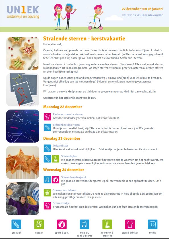 Het lijkt nog ver weg, maar voor je het weet is het al weer kerstvakantie. Er staat voor de bso weer een fijn programma