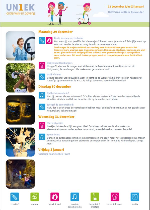 Helemaal in het teken van Kerst is het nieuwe bso-thema voor de Kerstvakantie: 'Stralende sterren'. Sporten, techiek, muziek, koken, creatief bezig zijn, alles komt weer aan bod!